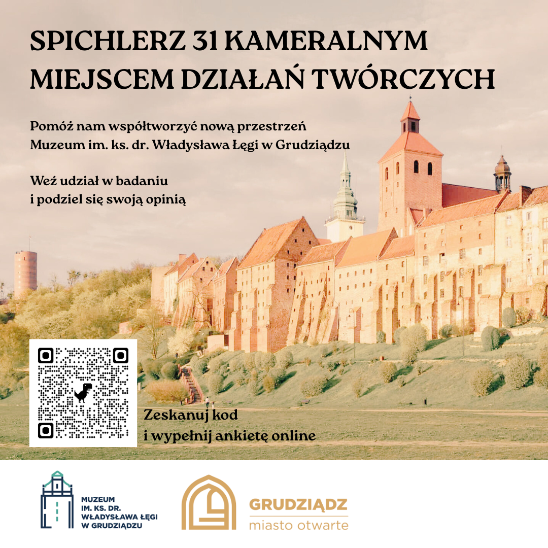Zwracamy się z prośbą o udział w badaniu zainteresowania i zapotrzebowania na nowe produkty i usługi kulturalno-edukacyjne oferowane przez Muzeum im. ks. dr. Władysława Łęgi w Grudziądzu. Przeprowadzona analiza i wyniki badania posłużą nam do zdefiniowania potrzeb oraz popytu na wzbogaconą i poszerzoną ofertę edukacyjno-kulturalną Muzeum, która prowadzona będzie w przebudowanym budynku Spichlerza 31 w Grudziądzu.